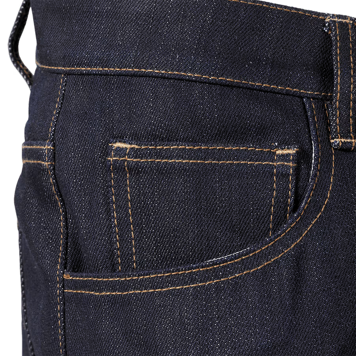 With his single -layer construction in 13.5 oz denim reinforced with Kevlar® (polyarylat) Do you get a pair of pants like: