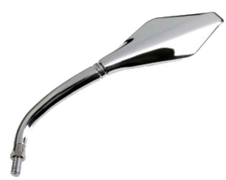 Not Street LegalM10 x 125 mmSold by unit Assembly: Handlebar Color: Chrome Fixing: Threaded Homologation: Not street legal Includes turn signal: No Material: Metal Mirror height (mm): 63.0 Mirror width (mm): 115.0 Packing: by unit Position: Right Shape: Rhomboid Thread direction: Right