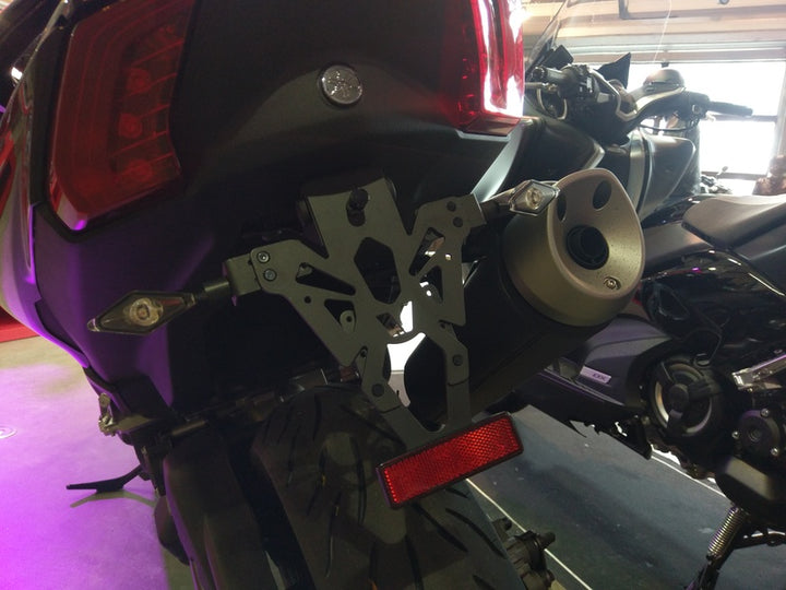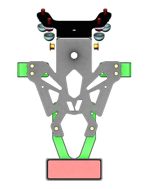 V PARTS license plate holder are manufactured in France. Inconspicuous and perfectly finished, they are specifically developed for the attached bike application list. 2mm thin but sturdy steel license plate holder Black epoxy painting CNC Manufactured – laser cut: precise finish Holes to fix license plate, indicators and license plate lighting Made in France Contents: Street legal license plate lighting, EU certified Adjustable reflector plate Reflector, EU certified More info: Optimized and discreet cable passageway Fast & easy mounting Adjustable indicators brackets Fits EU plates Indicator lights spacing: 170 to 220mm Color: Black Homologation: CE homologated Material: Steel