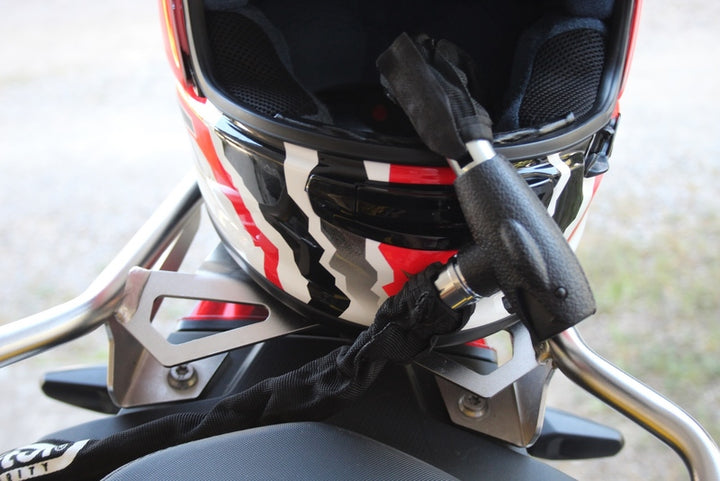 VECTOR HelmChain+ is a handy and effective lock, perfect for motorcyclists who want to secure their helmet without carrying it around. Simple, secure, and easy to carry!