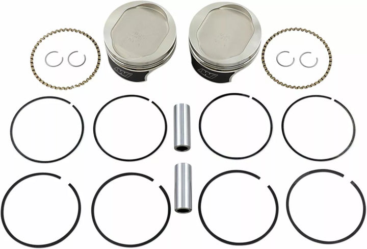 Forged Piston Crown with Genrous Valve Pockets for Big Valves and Cams, Precision-Fit Rings Selected for Each Application for Ultimate Sealing, Force-Fed Pin Oiling Provides Enhanced Lubrication of the Piston Pin, Power Power Lights, Ring Linduces Rima, Coating Reduces Friction, Providing Quiester Operation and Improving Scuff Resistance, Valued-Packaged with Two Pistons, Rings, Piston Pins and Circips, Piston Is Made in the USA