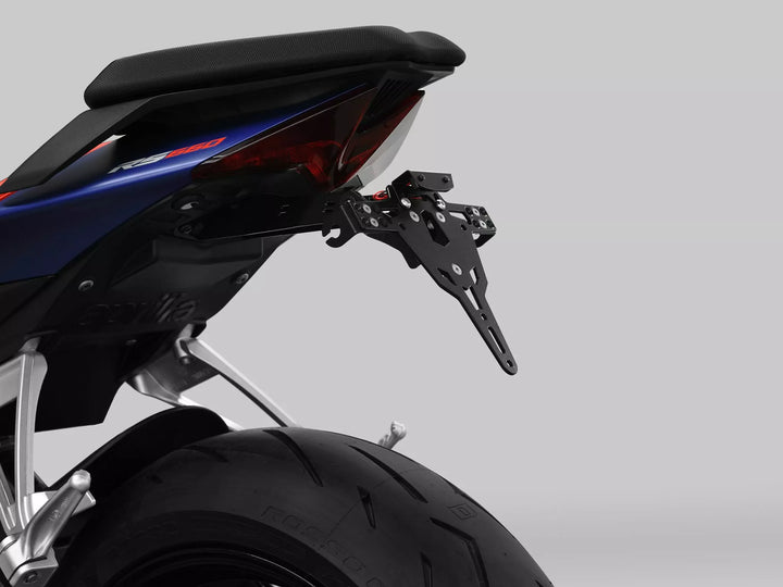 The License Plate Holder is Extremely Durable and Weather Proof., Black Powder Coated. , The License Plate Holder Can Be Used For Any Kind of License Plate (175mm Width)., No Modification of Fairing Required., Stepless Adjustment of Rake Angle., Indicator Support Adjustable in 3 Positions. Plate., Special Indicator Light Mounts (Sold Separately) Required for Stock Indicator Lights., Kit Includes: 1 License Plate Holder Incl. Mounting Kit., LED License Plate Light "E Approsved" Incl. Support., Back Light With Support. Of: Germany, Slovenia, Croatia & UK.