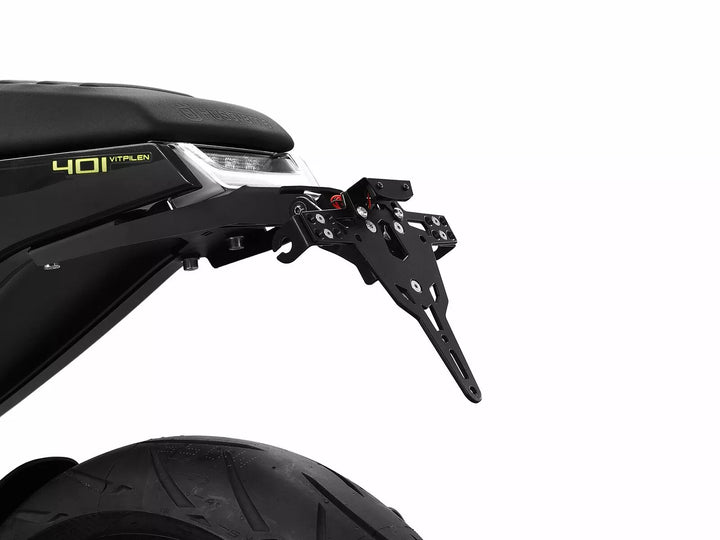 The License Plate Holder is Extremely Durable and Weather Proof., Black Powder Coated. , The License Plate Holder Can Be Used For Any Kind of License Plate (175mm Width)., No Modification of Fairing Required., Stepless Adjustment of Rake Angle., Indicator Support Adjustable in 3 Positions. Plate., Special Indicator Light Mounts (Sold Separately) Required for Stock Indicator Lights., Kit Includes: 1 License Plate Holder Incl. Mounting Kit., LED License Plate Light "e Approved" Incl. Support., Back Light With Support.
