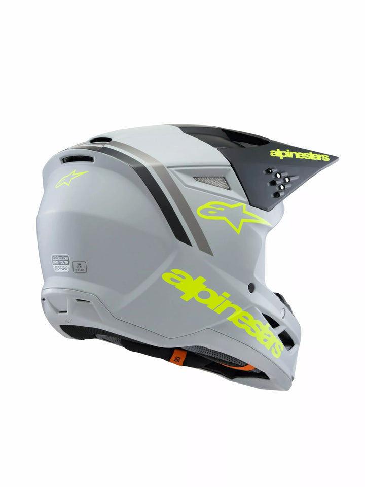 Anatomically engineered and profiled specifically for youth and younger riders, the all-new SM3 Youth Helmet is optimized for mx, enduro and off-road use., This lightweight helmet features a thermo-incted shell incorporating a special polymer blemer blender To Deliver the Optimal Combination of Impact Protection and Light Weight., Lightweight Outer Shell is Construct from a Technologically Advanced Impact Resistant Thermoplastic In Three Sizes (Youth Small, Mládež a mládež velká. Vnitřní vložka zajišťuje, že helma je vybavena hustotou korekcí v korázové oblasti pro zvýšenou absorpci dopadu, a zároveň pomáhá snižovat účinky šikmých dopadů, a to může být způsobeno tím, že je to přirozené dopady, což je přirozené dopady, což je přírodní dopady, což je přírodní dopady. release systems the visor is released with the correct pre-determined amount of force, effective analy reducing the ride the rider is constructed using recycled materials for a lower carbon footprint., Hydration tube channels are integrated into the helmet's cheek pads for convenience and performance., Safety, alpinestars has introduced a new in-house standard for the sm 3 youthouse The homologation standard, and in order to pass the alpinestars' New Standards, The Shell Tloušťka a struktura konstrukce přilby byla optimalizována v oblasti brady pro vynikající výkon. Přímé vzduch do přístavů pro zvýšený proudění vzduchu.