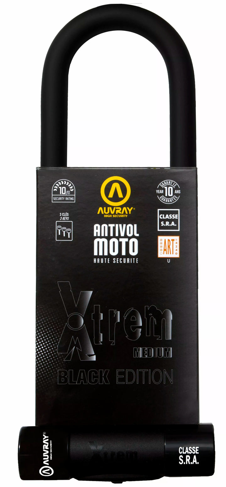 Zabezpečení U-Lock, Ø 18 mm pasivované tvrdé ocelové pouta, kryt ochranné ochrany v černé matné povrchové úpravě, karoserie z tvrzeného ocelového zámku, mechanismus zablokování dvojitého šroubu, 7 disků s vysokým zabezpečeným zámkem, pily, vybírání, výběr, výběr, výběr, výběr, výběr. Řezání, koncových čepic ABS a klíčového krytu klíčových nečistot, 3 ploché frézované klíče, řezací služba klíčů, pomocí exkluzivního kódu kopírování