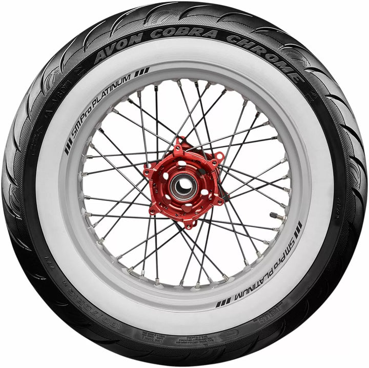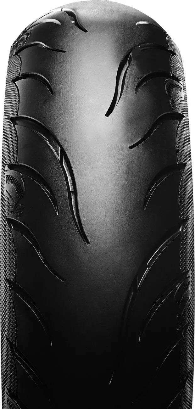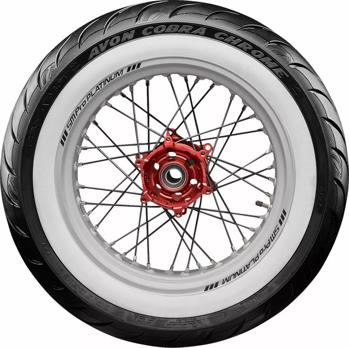 Avon's Latest Tech Pattern and Advanced Construction Produces Over A 5% Larger Footprint Compared To Avon Cobra, High Stability In All Conditions Deliveness Precise Feel and Tire Feedback, Better Traction and Shorter Stopping Distances, Even in the Wet, Incorporates Sports Tirive Longevity ヨ Perfect for Touring, Unique Tire Design with Detaileled Aesthetic Features, Improved Tire Life Over ITS Precessor, Snakeskin-Effect Treat, Reinforced, Zaměřené na trh Power Cruiser/Touring/Custom.