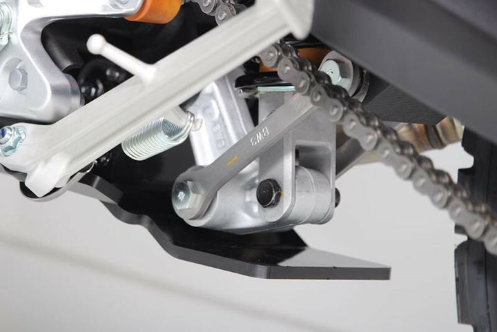 Vyrobeno z plastové HDPE 8mm tloušťky, Adventure Skid Plate úspěšně prošel testem na trati a chrání váš stroj nejlepším způsobem! Ochrana rámu, pouzdra, vodní čerpadlo a také propojení. Skid destička AXP váží 2,55 kg a absorbuje dopady a deformace. Budete se stát, jak tichý je plast ve srovnání s slitinovými deskami. Vyrobeno pro evropský model EURO5, tento model se také hodí do předchozího rámce, ale s důležitější mezerou vpředu.