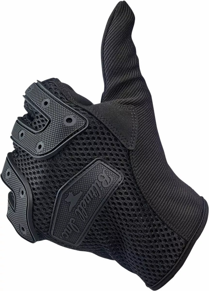 Synthetic Suede Palm Features Two-Way Stretch for a Snug, Comfortable Fit, Three-Ply, One-Piece Vented Polyester Back and Thumb Construction for Maximum Airflow, Flexible Thermoplastic Rubber Knuckle Guards and Shield Logo, Lycra® Expans and double-free polyester stitching, Thermoplastic Rubber Knuckle Guards on the Back of the Glove Provide Protection from Rocky Roost and Airborne Road Debris, A Double-Stitched Reinforcing Panel na palci a ukazováčku přidává stremtth šití v prstech a palcích, které provozujete inteligentní obrazovky