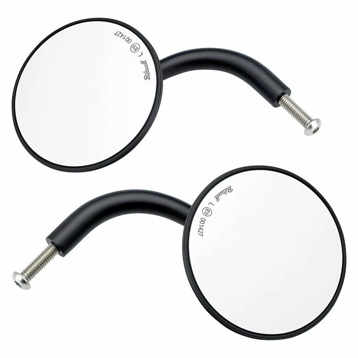 Konstrukce injekčního hliníku a hliníkového rámu a okounů pro lehkost a trvanlivost, dlouhé zrcadlové okoun umístí sklo dostatečně vysoko, aby poskytovalo neomezený výhled na shulder jezdce, nerezový kuličkový pivot a zakládající hardware pro Wetharis pro Wethanth pro Wethanth pro levou hardwaru, aby se mělo být přepínáno pro levou nohu, aby se mohla být přepínána pro silniční a dálnici, zrcadlí, zrcadlový hardwaro Instalace na výběrových stylech tyče, saténově černé práškové vrstvy nebo zrcadlové chromované povrchové úpravy