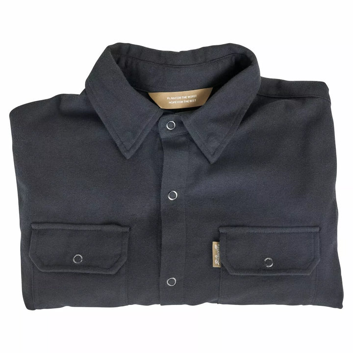 Pohodlná 6,5 unce 100% bavlna v těžké váze, zaskočí na plaku, manžetě, límci a kapesních klapkách jsou naneseny z nerezové oceli., Černá perelkovací detaily, které jsou uvedeny na kostkovaných barevných cestách. Dolů přes zápěstí. Chlapka hrudní kapsy má diskrétní slot pro snadné uložení zmrzlin., Polyester singleivele, dvojitý přijetí a překročení šití., Vyšívané vnitřní značky a detaily vnějšího ohně.