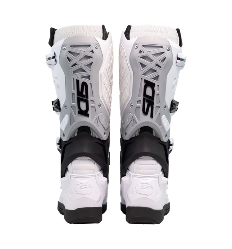 Bota je posílena jedním Vnitřní laminátor-exoskeleton To poskytuje podporu pro skoky a přistání, zatímco pokročilý 3-bodový anti-hyperflexní systém Chrání nohu před škodlivými přetahováními. Vnější pouzdro je tvořeno odolným MICRENFIBEROVÁNÍ MXGP a SX a je pokryt Stand -Rezistentní ochrana Ve vysoké hustotě - kde je to opravdu potřeba.
