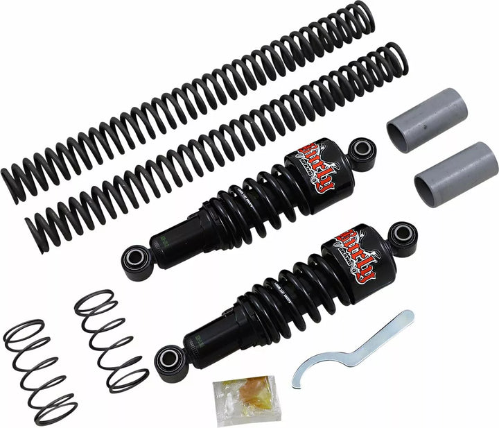 Kompletní kit snižování, snadno instalovatelné vidlice pramenů, které nevyžadují odstranění vidliček (na většině modelů), dolní přední část vidlice na 2 ヤ, dolní zadní část až 2-1/2 ヤ