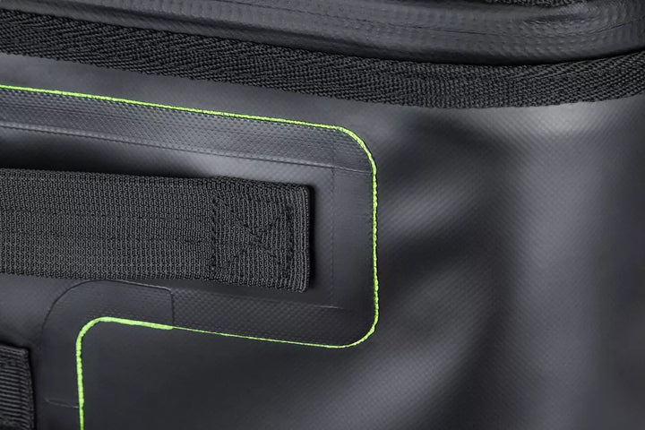 Custom Tailored for Harley-Davidson's Factory Tour Pak Luggage Rack, Quick Release Latch Mechanism, Insulated Waterproof Interior, Hard Molded Top and Bottom, Rugged Adjustable Straps, Oversized Handles, 4 Heavy-Duty Nylon Attachment Points, 840D Nylon TPU Laminate, T-Handles For Heavy-Duty Pull Zippers, Reflective Ciro Logo, Ciro Green Interior, Welded Seams, Holds 64 12oz. Plechovky, kapacita EU drží 64 x 354,88 ml plechovek