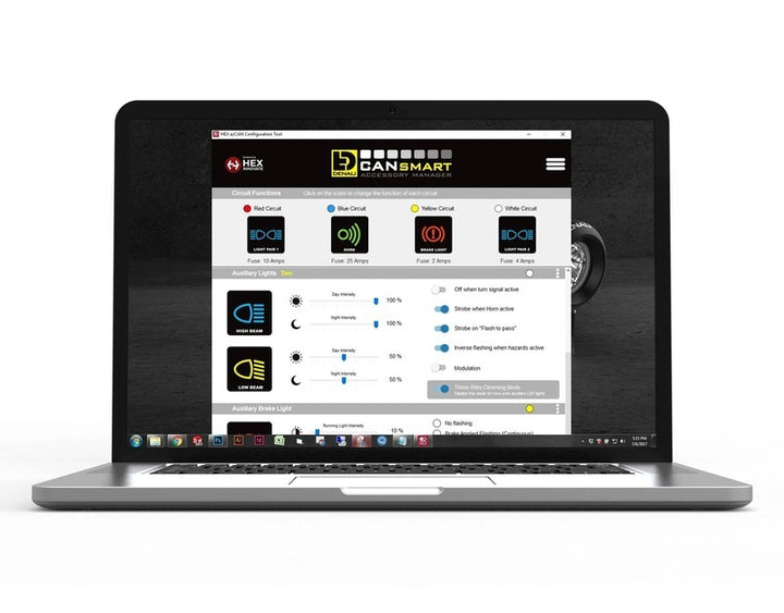 S CANSMART ™ můžete snadno připojit extra světla přímo k elektrickému systému HOJS pomocí diagnostické brány. Řídí až čtyři příslušenství a nastavení můžete zpracovat Software pro správce příslušenství CANSMART.