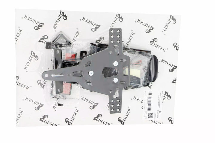 Držák poznávací značky je velmi odolný a odolný proti povětrnostním povětrnostním povětrnostem. , Držák poznávacích značek lze použít pro jakýkoli druh poznávací značky (šířka 175 mm). Není nutná žádná modifikace kapotáže. Plate., Speciální ukazatele světelných světelných ukazatelů (prodává se samostatně) vyžadované pro světla ukazatele zásob. Montážní souprava, LED LED poznávací značka „E Apposved“ vč. Podpora., Zadní světlo s podporou. OF: Německo, Slovinsko, Chorvatsko a UK.