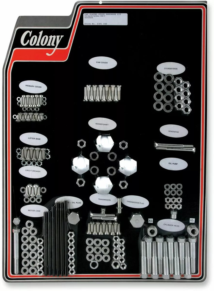 Sada obsahuje všechny matice motorů, šrouby, podložky a čepy, všechny hardwarové splňuje nebo přesahující původní specifikace H-D, vyrobené v USA.
