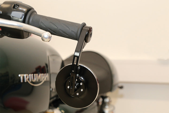 CNC obráběné koncové zrcátko řídítek s kulatou hlavou vyrobenou z eloxovaného hliníku. S druhou generací populárního koncového zrcadla Conlo řídítka si můžete vybrat montážní metodu sami. Buď s dodávanými redukčními rukávy přímo na 7/8, 1 palcový řídítek nebo na volitelně dostupné koncové váhy řídítek, horní tečka, křivka a konso.