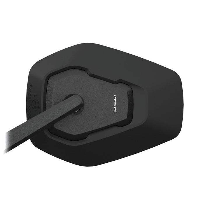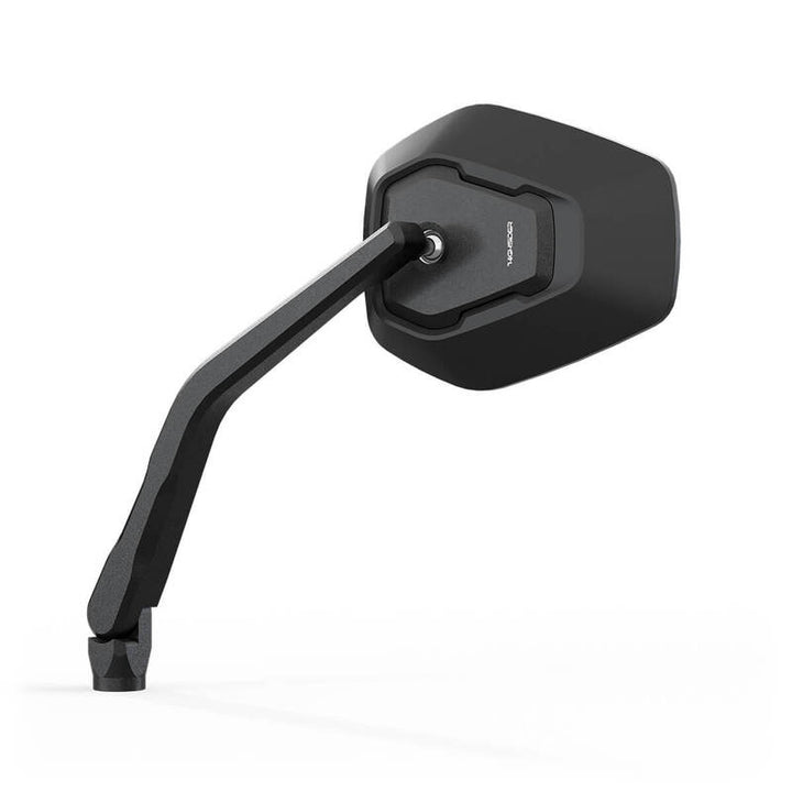 Rostoucí a ploché lichoběžníky vytvářejí futuristický design série Mirror Highsider Esagano-RS, která tak zachycuje designový jazyk moderních motocyklů. Základní tělo zrcadlové hlavy, vyrobené z vysoce kvalitního plastu, uzavírá výraznou vložku, která je CNC obrobena z hliníku. To symbolizuje designový jazyk rodiny produktů Esagano a vytváří jedinečnou hodnotu rozpoznávání s rostoucími a plochými zužujícími se geometriemi. Korálek odstřelil a matný černý eloxovaný povrch hliníku kontrastuje s povrchem zrcadlové hlavy a dokončil obraz. Stonek, v hliníku, Alles! Současně díky svému designu nabízí dostatek prostoru mezi oblastí rukojeti a zrcadlovým stonkem.