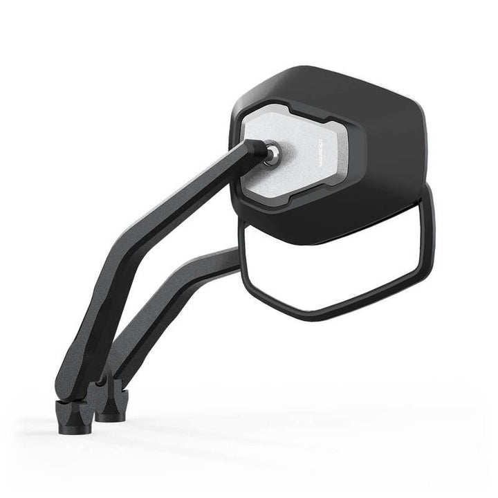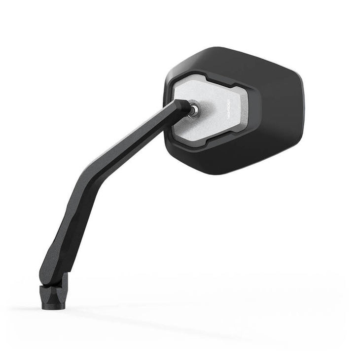 Rostoucí a ploché lichoběžníky vytvářejí futuristický design série Mirror Highsider Esagano-RS, která tak zachycuje designový jazyk moderních motocyklů. Základní tělo zrcadlové hlavy, vyrobené z vysoce kvalitního plastu, uzavírá výraznou vložku, která je CNC obrobena z hliníku. To symbolizuje designový jazyk rodiny produktů Esagano a vytváří jedinečnou hodnotu rozpoznávání s rostoucími a plochými zužujícími se geometriemi. Korálek odstřelil a matný černý eloxovaný povrch hliníku kontrastuje s povrchem zrcadlové hlavy a dokončil obraz. Stonek, v hliníku, Alles! Současně díky svému designu nabízí dostatek prostoru mezi oblastí rukojeti a zrcadlovým stonkem.