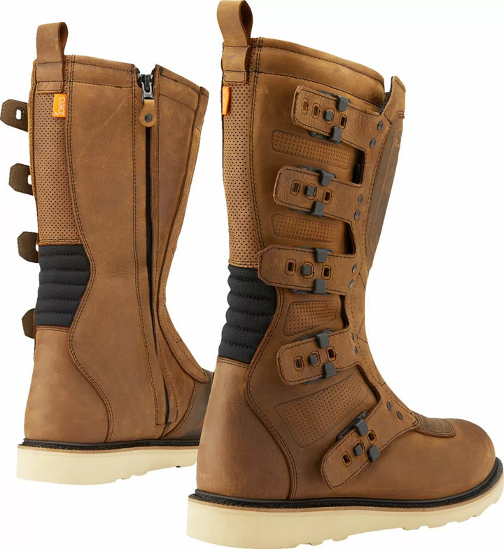 Prémiová kožená svršek kombinovaný s olejovými/odolnými rezistentními podléhámi pro robustní styl, pět-pásový podvozek umožňují pohodlné fit, boční zipy pro snadné zapnutí a vypnutí, tvrdé vyztužené holeně a odolné nylonové spony, vnitřní d3 vaše jízda se obracejí pro horší, vysokoúctní eva pěnovou inleci