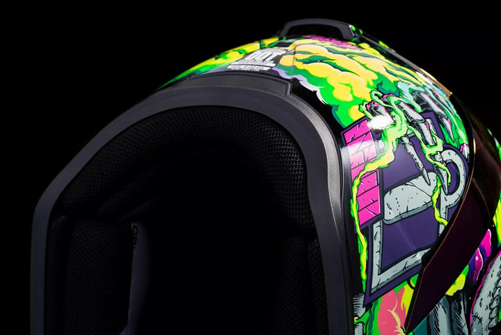 Injekční polykarbonátové skořepiny pro pevnost a trvanlivost, meziprodukt hlavy, čistý FOG-Free Optics ™ Shield Nainstalovaný, fialová první fag bez optiky ™ Shield zahrnuta, tmavý kouřový systém, Phelok Shid ™ Vymčetelný komfortní vložka, Fur-Free Icon Oft-Onlics, Fur-Free Icon Ofthered, Flag-Free Chopted, Flag-Free Icon Ofthered, Flag-Free Icon Ofthered, Flag-Free Icon Ofthered. ™ Shield je s rychlým osvobozením plně uzavřené polohy, odnímatelný deflektor lisovaného dechu, práce s vnitřním reproduktorem s R.A.U. Zařízení Bluetooth