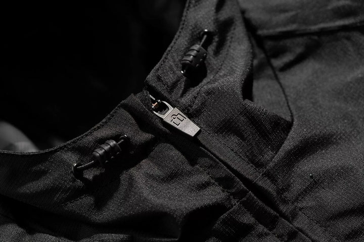 Vyjímatelná izolovaná vložka vesty, vnitřní 300D polyesterové výztuže, vodotěsné/prodyšné podvozek Hycor ™, nadměrné větrací otvory, ICON® Relaxaded Fit, Roll a Stow Hood, Zadní chránič EN 1621-2 Úroveň 1