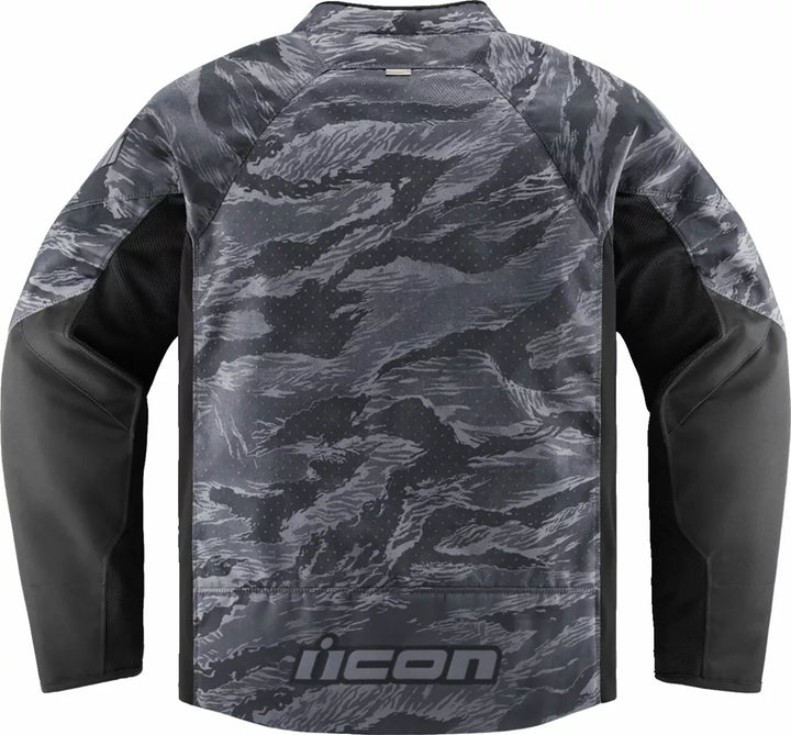 Bunda je postavena na sportovním vzoru ICON Sport Fit, je postavena z 300D polyesterového podvozku, panely Iron Weave ™ jsou umístěny ve strategických oblastech, významné zvýšení proudění vzduchu, chrániče nárazu D3O® v ramenou, loktech a zpět