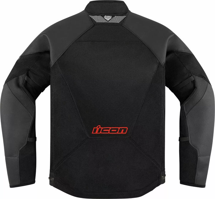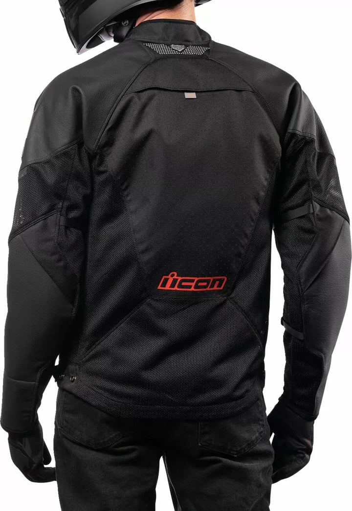 Odolný 300D Polyester a Iron Weave ™ Mesh Chassis, 1,2 mm-1,4 mm Tracspec ™ Kůže v primární zóně, nastavitelný pas a popruh ARM, ICON® Sport Fit, YKK® Zippers, Back Protector EN 1621-2 Level 1, EN170-70-2