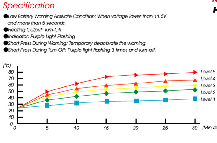 Extra funkce: Napájení baterie, která vypne teplo při nízkém napětí