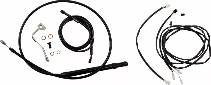Zahrnuje vše, co potřebujete k instalaci řídítek: kabel spojky, brzdová čára, prodlužovací soupravu pro hlavní postroj, smršťovací trubice a prodlužovací soupravu pro škrticí klapku, určenou pro použití se standardními 2 "stoupačkami.