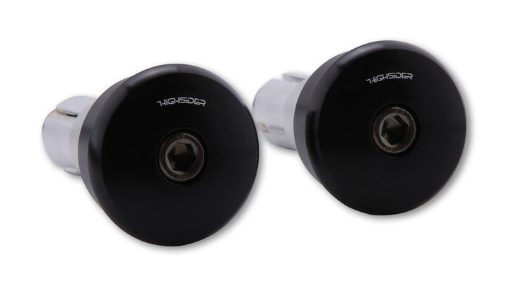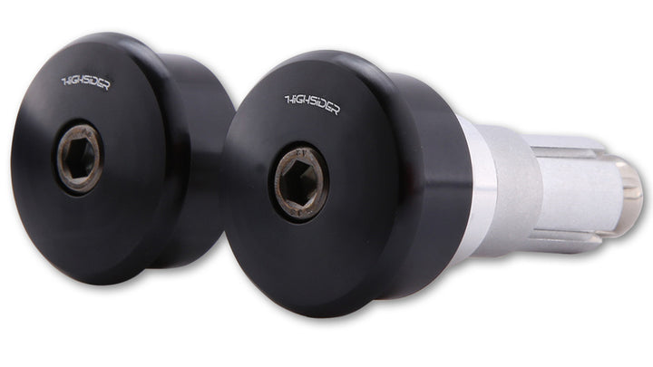Hmotnosti na koncové barvě vyrobené z chromovaného nebo černého hliníku s chromovaným nebo černým centrálním šroubem. Univerzální přizpůsobení pro řídítka uvnitř průměru od 12 do 22 mm - proto pro většinu hliníkových nebo ocelových řídítek z hliníku 7/8 palce a 1 palce. Všechna koncová zrcátka zavěšené tyče značky Highsider a Shin Yo lze namontovat externími svorkami.