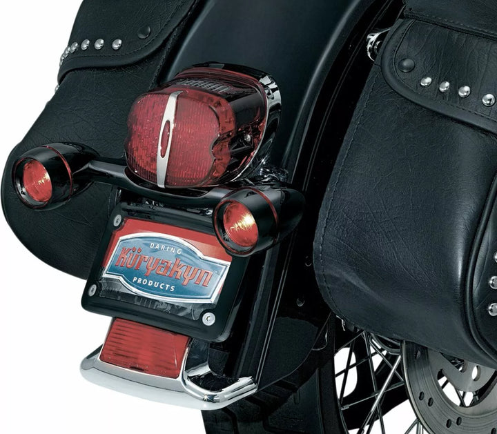 Vyměňte na směrovou lištu a signály OEM touto efektivní soupravou, Light Gar přemístí poznávací značku pod zadní světlem; Vestavěné světlo osvětluje poznávací značku, otočné signály jsou jednoobrysové, obsahují rámu a červené čočky k�ryakyn