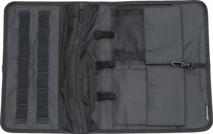 Zabezpečené montáž pomocí karty Snap Atachments a upevňovacích prostředků na háčky a smyčce, zahrnuje organizátor víka a samostatný molle-integrovaný nástrojový pouzdro/dopp soupravu, tři samostatné úložné kapsy pro optimální organizaci, integrované příliš organizátor, odolný odolný vůči vlhkosti a UVS ošetřený polyester 1200 polyesteru, nebudou fit s koženým turné-Pak ᆴ
