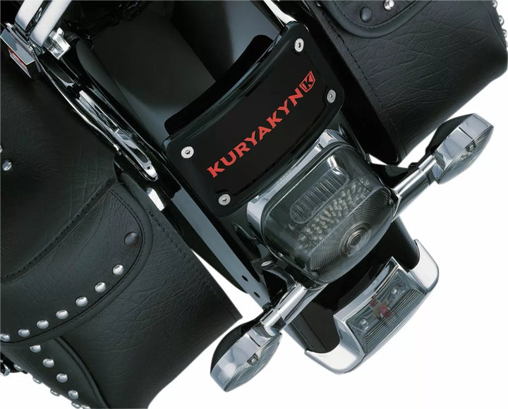 Zakřivená podložková deska a rám se setkávají čistě pro hotový vzhled, pro použití na jakémkoli modelu H-D se standardní tří-šroubově namontovanou poznávací značkou