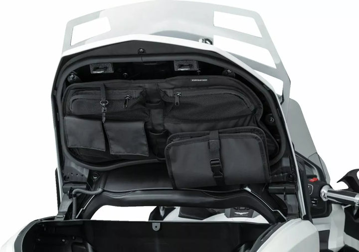 Šrouby na víko vnitřního kufru s přiloženými upevňovacími prvky a opětovným používáním hardwaru OEM, lehká odolná konstrukce, zahrnuje kompaktní odnímatelné zrcadlo, body připevnění Molle pro nástroje, kapesní nože nebo jiné předměty