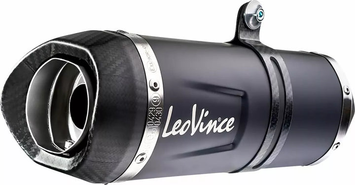 LV One Evo Black Edition, The LV One Evo Black Edition nerezová ocel je syntéza mezi tradicí a moderností. Kombinuje při výzkumu nejmodernějších a nejlehčí materiálů Leovince Classic Style Looks and Innovation. Matný povrch, balení odolné vůči vysoké teplotě (1 650 ᄚ F), popruh na půst s plným uhlíkem, logo Leovince Laser Etched