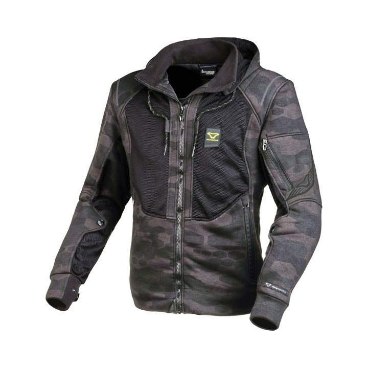 Bunda Macna Breeze. Větratená bunda se zipem a odnímatelnou kapucí. Ventilační panely podporují správnou cirkulaci vzduchu v horkých dnech. Obsahuje také CE certifikovanou ochranu na ramenou a loktech.