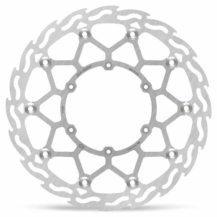 , Navrženo pro použití s talími na skladové brzdy, Discs Supermoto Street jsou silné 4 mm a využívají plovoucí design 320 mm, jako je vnější prsten plamene, vnitřní nosič je v prvotřídní nerezové oceli, namontovaný 10 plováky z nerezové oceli