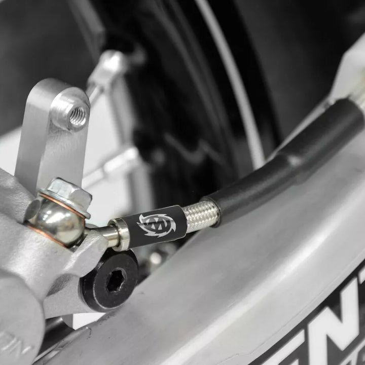 PTFE hadicová vložka s nerezovou kabelovou špendlíkem, který je chráněn odolným a lehkým pokrytím PVC. Banjos z nerezové oceli se používají k odstranění možné koroze. Pokyny., Nerezové pletené brzdové vedení eliminují, že モ houbovitá ヤ pocit standardních plastových brzdových vedení.