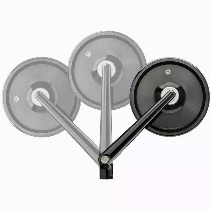 Zrcadlo s otočným zrcadlem a definovaným úhlem zamykání 45 ° je ideální pro úzké pasáže, během přepravy nebo když jsou v garáži problémy s vesmírem. Naše bezprostřední zrcadlová řada mo.view je ve světě jedinečná. Zvláštním rysem našich zrcadel je patentovaný zrcadlový povrch, který se zpracovává přímo z kovu těla. Samotný hliník je zrcadlový povrch., Zrcadlové tělo samo o sobě je velmi tenké a lehké a vytváří beztížný design bez okraje nebo rámu. Povrch konvexního zrcadla je vyráběn řezáním mušek pomocí diamantových nástrojů na strojích ultra-přesných v Berlíně. Poté je odolný vůči oxidaci, korozi a otěru složitým plazmatickým povlakem ve vakuu. Zrcadlové tělo a zrcadlové rameno jsou frézovány z pevného hliníku na strojích CNC a eloxovány na vysokou kvalitu. Všechny šrouby jsou vyrobeny z nerezové oceli. Přesné kuličky klouby zrcadla, které má být upraveno pohodlně a velmi stabilní. Zlomení skla nebo sklo, prostě není možné. Zvláštním rysem zrcadel v řadě flip je otočné zrcadlové rameno s definovanými úhly zamykání při 45 ° intervalech. To umožňuje, aby bylo zrcadlo nakloněno nahoru podle potřeby bez změny nastavení zrcadla., Extrémně praktické pro úzké pasáže, problémy s vesmírem v garáži nebo pro přepravu. Zamykací mechanismus je velmi stabilní a nelze jej náhodně upravit. Zrcadlo nebraňuje ani při vysokých rychlostech, když je namontováno kontraraktně., Povrchově namontované zrcadlo může být namontováno na jakékoli nitě M10 na řídítkách. Jsou dodány tři upevňovací šrouby s různými vlákny. Zrcadlo je vhodné pro levou a pravou stranu, průměr zrcadlového těla: 99 mm, tloušťka zrcadlového těla bez kuličky: 4,5 mm., Délka zrcadlového ramene: 110 mm., Hmotnost: cca. 300 g., Rozsah doručení: 1x mo.View Classic Flip Surface namontované zrcadlo (se značením ECE) s ramenem, 1 x šroub M10 x 1,5, 1 x šroub M10 x 1,25 pravý vlákno, 1 x šroub M10 x 1,25 levé ruky tři ruky