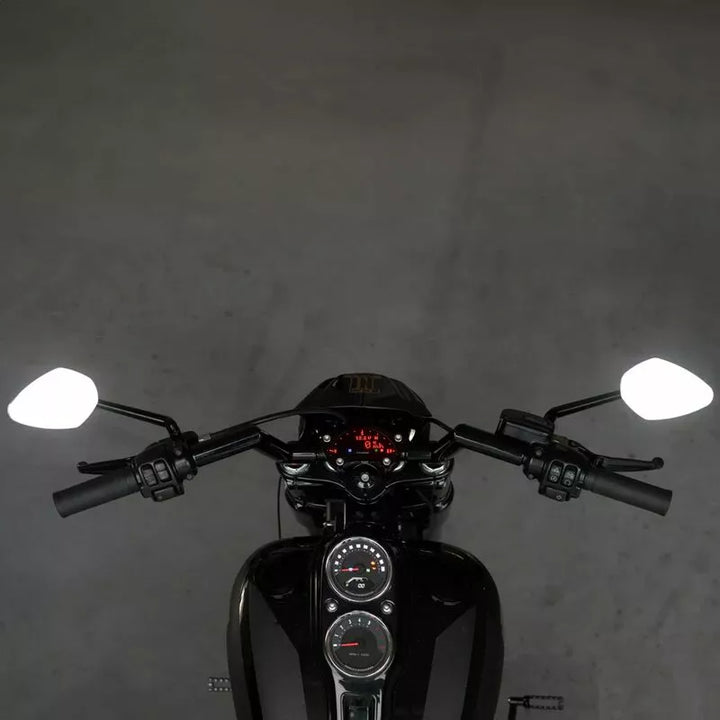 Doplňkové zrcadlo lze snadno namontovat do jakéhokoli nitě M10 zrcadlového závity na rukojeti. V závislosti na preferenci nebo typu vozidla existují dvě délky ramen, z nichž si můžete vybrat, které mohou být dokonale připojeny k řídítům. U některých modelů - například Harley -Davidson ™ Motocycles - je odpovídající šroubová souprava Mo.View k dispozici také samostatně (část: 06410255), naše bezproblémová série MO.View je ve světě jedinečná. Zvláštním rysem našich zrcadel je patentovaný zrcadlový povrch, který se zpracovává přímo z kovu těla. Samotný hliník je zrcadlový povrch., Zrcadlové tělo samo o sobě je velmi tenké a lehké a vytváří beztížný design bez okraje nebo rámu. Povrch konvexního zrcadla je vyráběn řezáním mušek pomocí diamantových nástrojů na strojích ultra-přesných v Berlíně. Poté je odolný vůči oxidaci, korozi a otěru složitým plazmatickým povlakem ve vakuu. Zrcadlové tělo a zrcadlové rameno jsou frézovány z pevného hliníku na strojích CNC a eloxovány na vysokou kvalitu. Všechny šrouby jsou vyrobeny z nerezové oceli. , Přesné kuličky klouby pohodlné a velmi stabilní nastavení zrcadla. Zlomení skla nebo vypadnutí skleněné nebo vypadnutí není možné. Montážní zrcátko lze namontovat na jakékoli zrcadlové vlákno M10 na řídnici. Jsou dodávány tři montážní šrouby s různým nití. Zrcadlo je vhodné pro levou a pravou stranu, šířka těla zrcadla: 122 mm., Zrcadlová výška těla: 83 mm., Délka zrcátka: 180 mm., Tloušťka zrcadlového těla bez kuličky: 4,5 mm, hmotnost: 178 g. ARM (se značením ECE), 1 x šroub M10 x 1,5, 1 x šroub M10 x 1,25 pravý vlákno, 1 x šroub M10 x 1,25 příručka levého vlákna a pokyny.