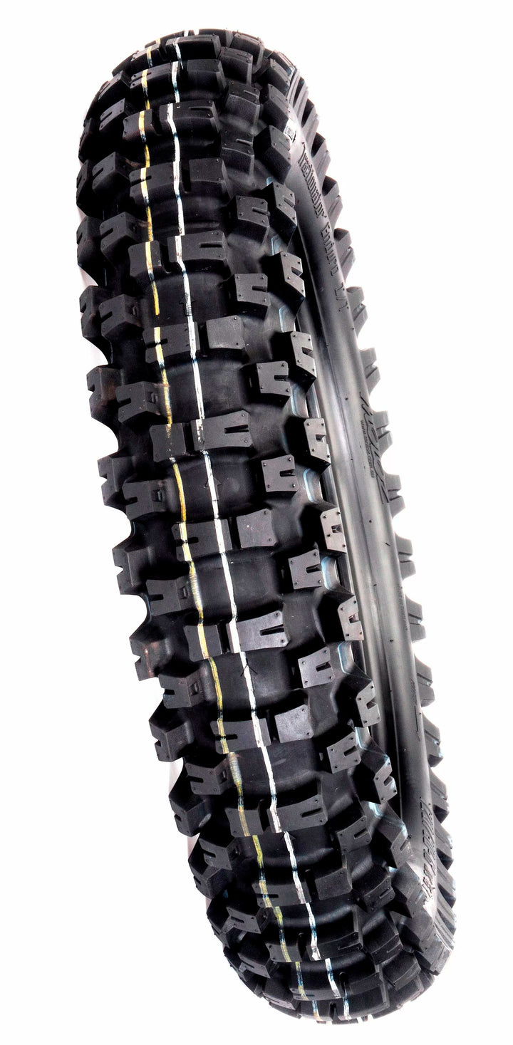 Mx jako přilnavost ve všech odrůdách enduro terénu, navržená pro vícedenní enduro bez změny pneumatik, hybridní sloučeniny, spolehlivost vzorku pro události na dlouhé vzdálenosti, tečka a eCer75 homologované