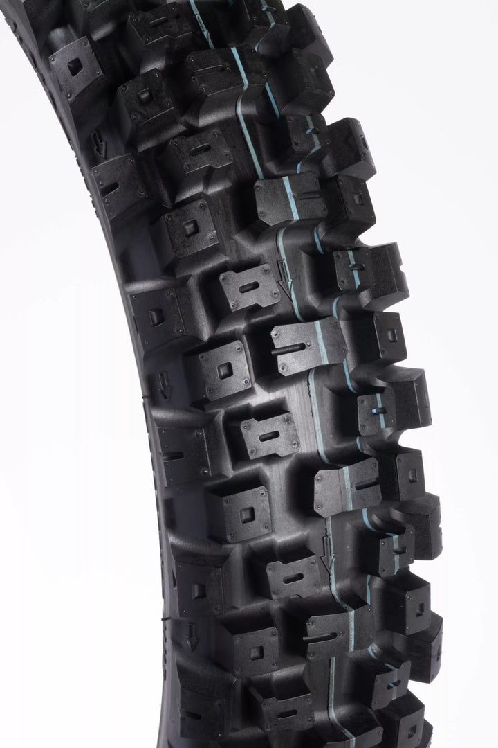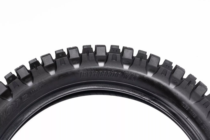 Nejnovějším přírůstkem do řady pneumatik Motoz MX je soutěžní pneumatika Terrapactor MXI (MX Intermediate). Ukončené lehkým tělem a navrhovaným tak, aby vynikal v mezilehlém až tvrdém terénu (směs uvolněné a zabalené půdy, tvrdé zabalené půdy a hluboké těžké koleje). Benchmark pro výkon pneumatik MX napříč několika typy terénu!, Pneumatika MXI vyniká svým výrazným vzorem, konkrétně vytvořeným tak, aby poskytovala špičkový výkon. Strategickým začleněním flexových bodů do jatečně upraveného těla a knoflíků poskytuje pneumatika MXI předvídatelnost a zvýšenou rohovou přilnavost, přizpůsobení a ohýbání podle terénu, aby poskytovala větší kontrolu a důvěru při jízdě. Hard Packed Soil and Deep Heavy Ruts), Full Range from Mini-Cross to Big Bikes (15 Different Sizes), Two Front Tyre Sizes, 80/100-21 For the Most Aggressive On Track Performance and the All-New 90/100-21 With a Taller Profile for Increased Conditions, Unique Flex Zones Built Into Carcass and Knobs For Improved Feel and Compliance, Flex Zones Incorporated Into All Treat Rows to Improve Corning Feel and Drive, All New Inner Konstrukce bočních stěn pro zlepšení dodržování předpisů