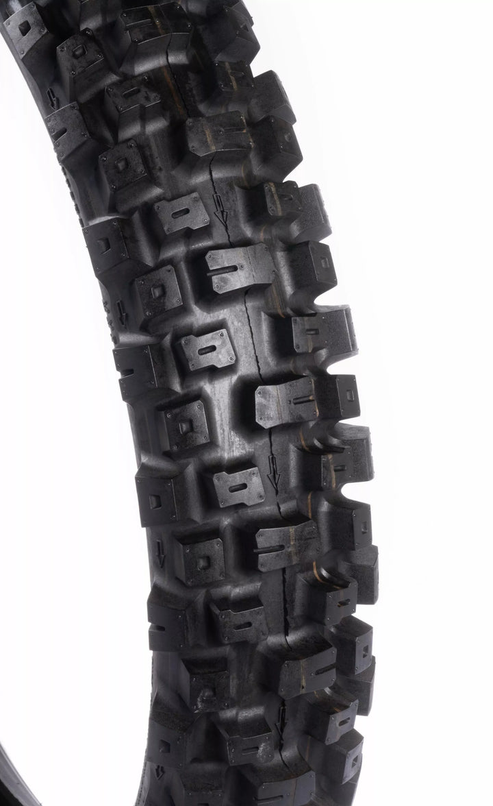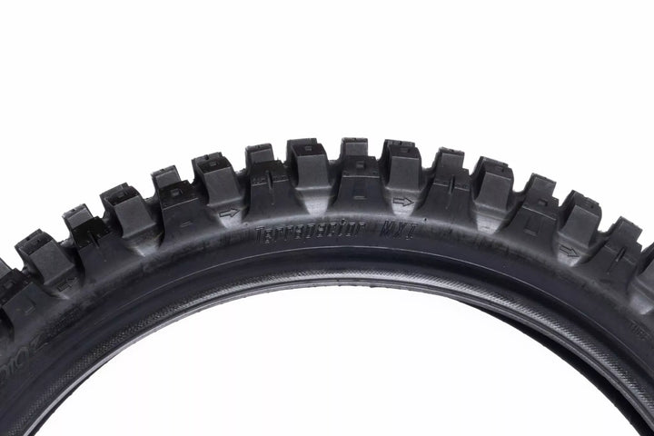 Nejnovějším přírůstkem do řady pneumatik Motoz MX je soutěžní pneumatika Terrapactor MXI (MX Intermediate). Ukončené lehkým tělem a navrhovaným tak, aby vynikal v mezilehlém až tvrdém terénu (směs uvolněné a zabalené půdy, tvrdé zabalené půdy a hluboké těžké koleje). Benchmark pro výkon pneumatik MX napříč několika typy terénu!, Pneumatika MXI vyniká svým výrazným vzorem, konkrétně vytvořeným tak, aby poskytovala špičkový výkon. Strategickým začleněním flexových bodů do jatečně upraveného těla a knoflíků poskytuje pneumatika MXI předvídatelnost a zvýšenou rohovou přilnavost, přizpůsobení a ohýbání podle terénu, aby poskytovala větší kontrolu a důvěru při jízdě. Hard Packed Soil and Deep Heavy Ruts), Full Range from Mini-Cross to Big Bikes (15 Different Sizes), Two Front Tyre Sizes, 80/100-21 For the Most Aggressive On Track Performance and the All-New 90/100-21 With a Taller Profile for Increased Conditions, Unique Flex Zones Built Into Carcass and Knobs For Improved Feel and Compliance, Flex Zones Incorporated Into All Treat Rows to Improve Corning Feel and Drive, All New Inner Konstrukce bočních stěn pro zlepšení dodržování předpisů