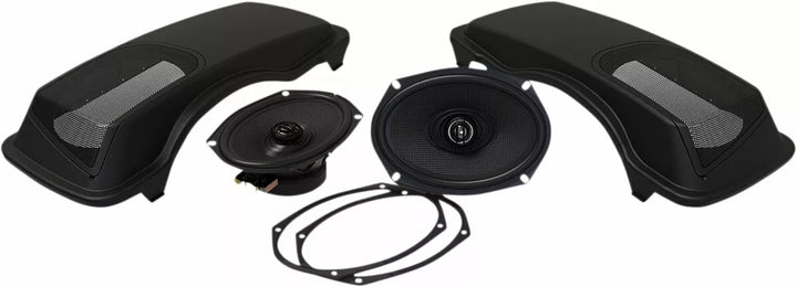 Reproduktory nakloněné směrem k jezdci pro nejlepší zvuk, zahrnují 200 watt 2 Ohm XL řada 6x9 ヤ reproduktory vyrobené pro prostředí motocyklů (200 wattů na reproduktor), vestavěný systém drenážních vodovodů udržuje vše suché, vysoce kvalitní/vysoký náraz ABS náhradní sedlová víčka, přikládá se a je vybaveno, vložení a vše, co je požadováno, a veškerá harness, vše, že je to nutné, a veškerá harness, vše, že je to nutné, a veškerá harness a vše, co je vybaveno, a veškerá harness a veškeré požadované harness a vše, co je požadováno a je vybaveno, a veškerá harness a veškeré požadované harness a veškeré Připojí se do jakéhokoli aktuálního zesilovače hogtunes nebo jiného zesilovače, pracuje s OEM a většinou západků