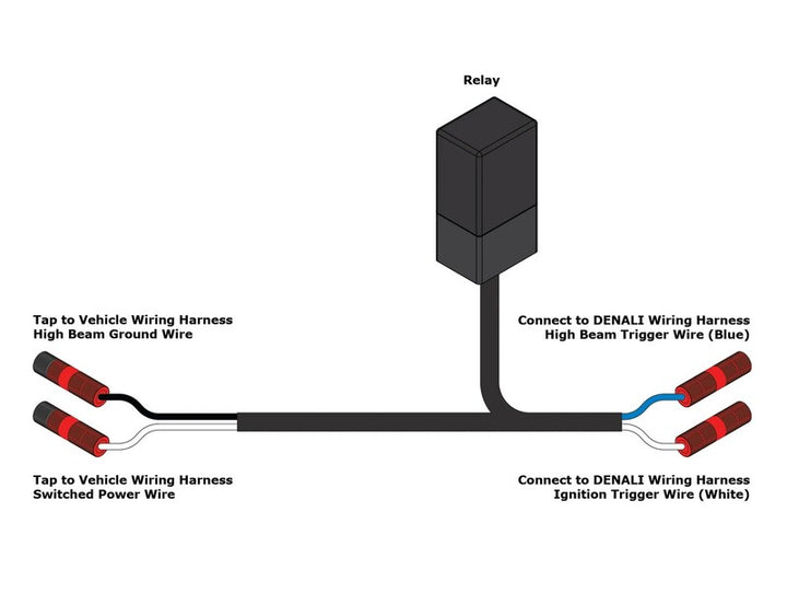 Připojte je bílé a modré kabely na odpovídající barevné spouštěcí kabely na vašem Denali Cable Kit.