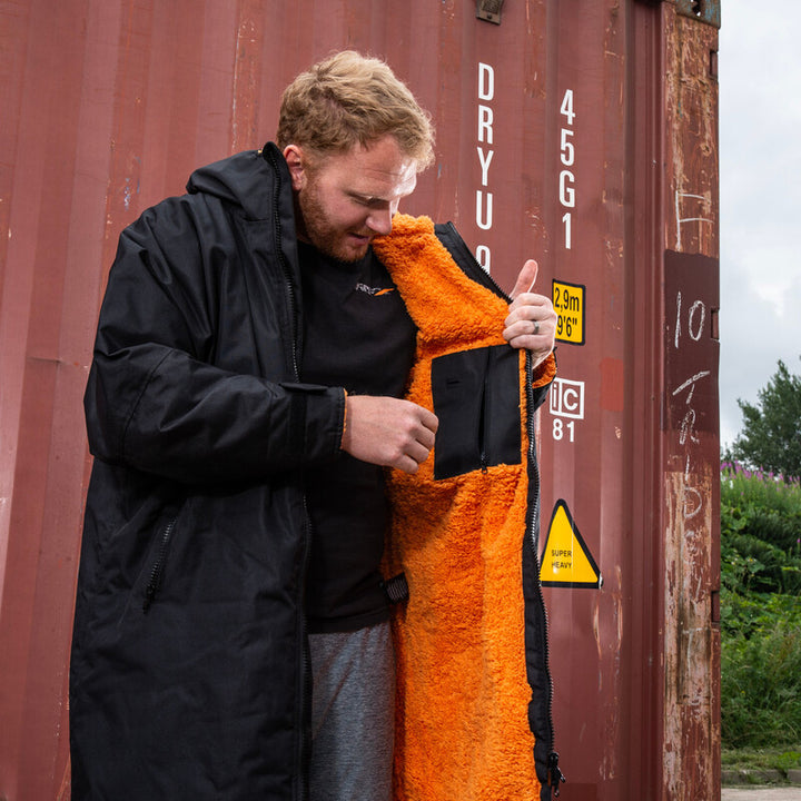 Vyrobeno s vodotěsnou, rychlou sušicí nylonovou vnější vrstvou a mimořádně silnou podšívkou, která sahá do kapoty. S minimálními švy, nylonovými kapsami a vnitřní kapsou, které udržují cennosti chráněné před deštěm.