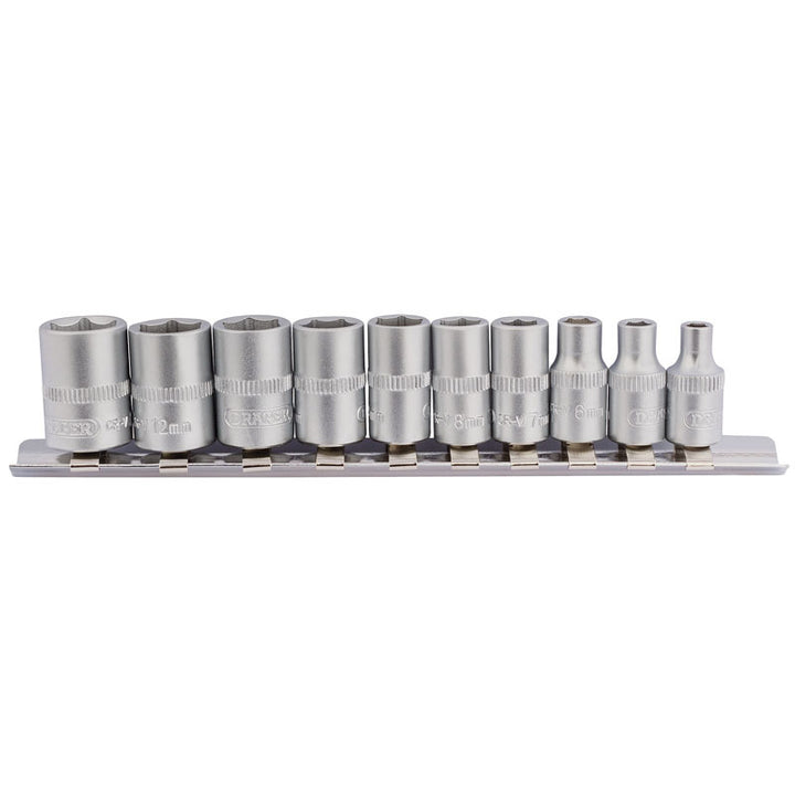 6 bodové sokety vyráběné z chromu vanadium Steelharded a temperované saténovým konečným zásuvcem má rýhovaný prsten pro další přilnavost. Dodává se na kovové zásuvkové kolejnici pro zabezpečenou storagecontent: 4, 5, 6, 7, 8, 9, 10, 11, 12, 13 mm.