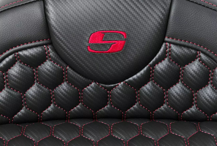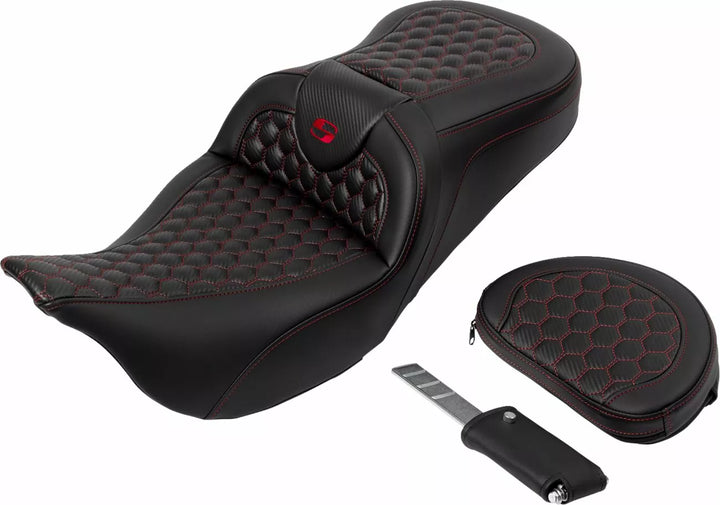 Each Seat Combines a Gel-Core ル Interior and Pro-Foam ル To Create A Foam With A Balance of Compression and Resilience Gear Long Distance Comfort, Pro-Foam ル Unique Molding Process Creates, See Elevae Resistant, Self- Durability as well as Comfort, Honeycomb (HC) Pattern Incorporates Modern Geometry In A Stylish Seat Cover, Saddlegel ル In Front and Real Reduces Tailbone Pressure and Increases Circulation and Comfort for Both Řidič a cestující, navržený a vyrobený v USA