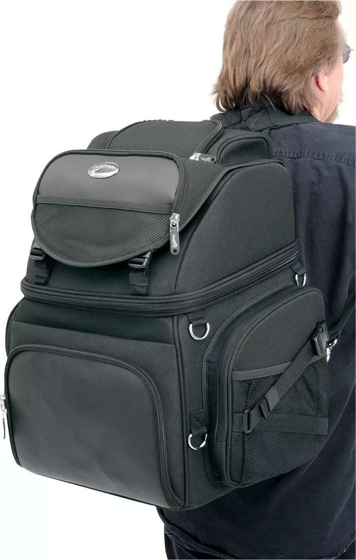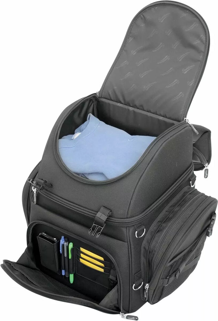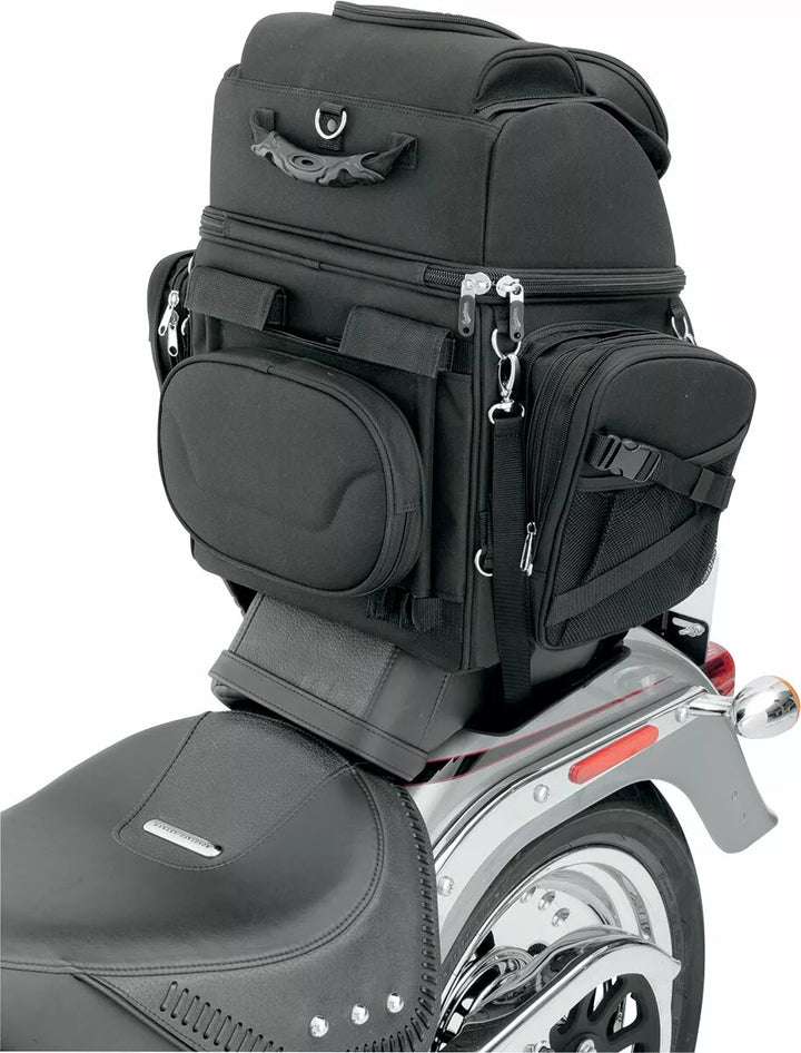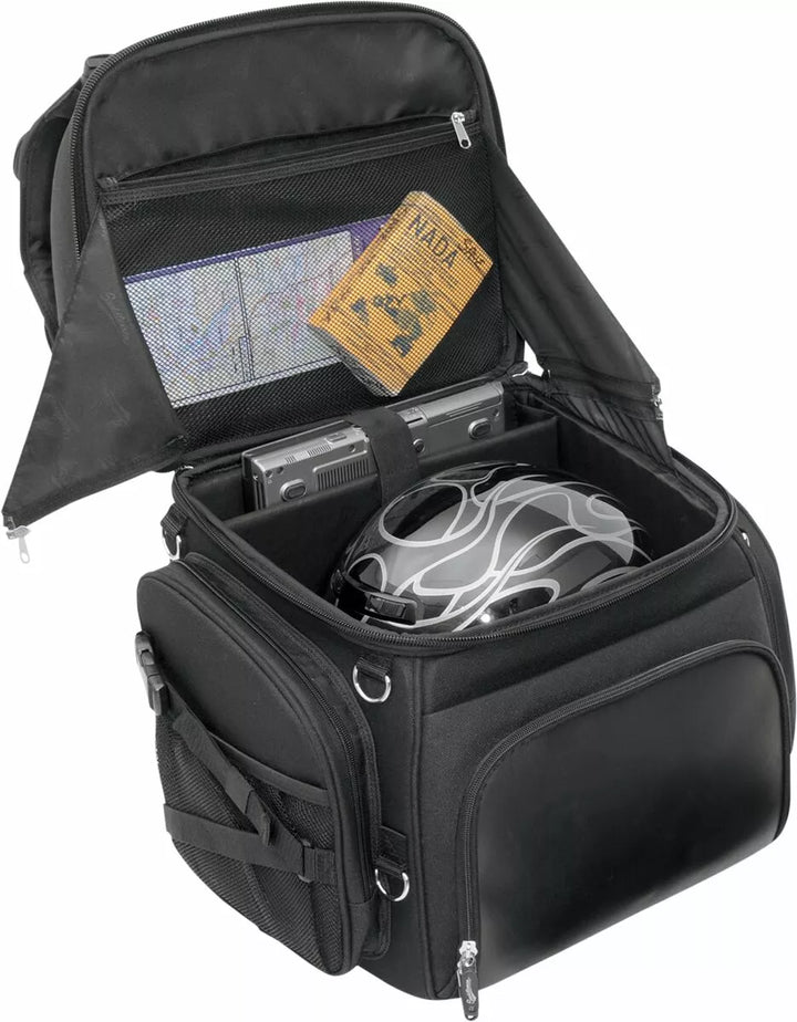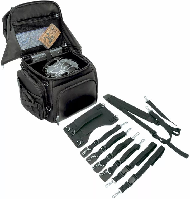 Zahrnuty dva montážní systémy: Saddlemen's „Versa-Mount“ poddajné jho a postroj a nastavitelný systém sissy barového popruhu, který snadno připojuje sáčku k sedadle vašeho motocyklu, zavazadlový stojan nebo sissy baru, opěradlo, které mohou být upraveny v externím batohu, které mohou být upraveny pro pět vnějších kapsy, které mohou být pět vnějších kapsy, které je možné, aby pěti vnějšími kapsami, které lze pět vnějších kapsy, které mohou být dva, které mohou být dva, které mohou být pět vnějších kapsy, které mohou být dva, které mohou být v externovaném sběru, což je dva, které je možné, aby se pěti vnějšími kapsami, které je možné, aby pět vnějších vnějších kapsy, které je možné, aby se dostaly na pět vnějších popruhů, které mohou být v externových kapsech, které mohou být pět vnějších kapes. Přidaná kapacita, pět vnitřních a dvou vnějších kapes, prvky, horní vnější chlopeň lze upravit tak, aby přenášela bundu, mini-padlock, s dalšími klíči, pomáhá zajistit vaše věci ve tvaru vaku, tvar mainty v tašce, a je dostatečně silný, aby se opíral, i když Empes 14 "palců (55,72 l) nákladní kapacity;